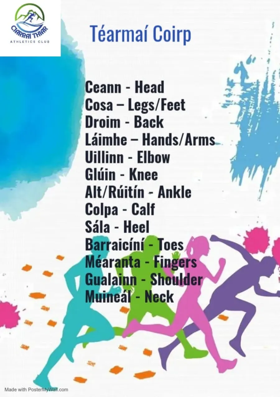 To support coaches, the club has created sheets of useful Irish phrases for training sessions. These are attached below—why not give a few a go at your next session and add some athletics cúpla focal?